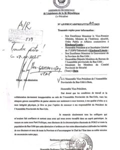 La plénière a officiellement pris acte de sa démission. Le vice-président Antoine Gambolipayi, qui a dirigé la séance, a annoncé la suspension de l’examen de la pétition, conformément au règlement intérieur de l’Assemblée provinciale.