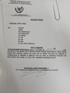 Lire ci-dessous le message officiel du VPM de l’Intérieur, Jacquemin Shabani
