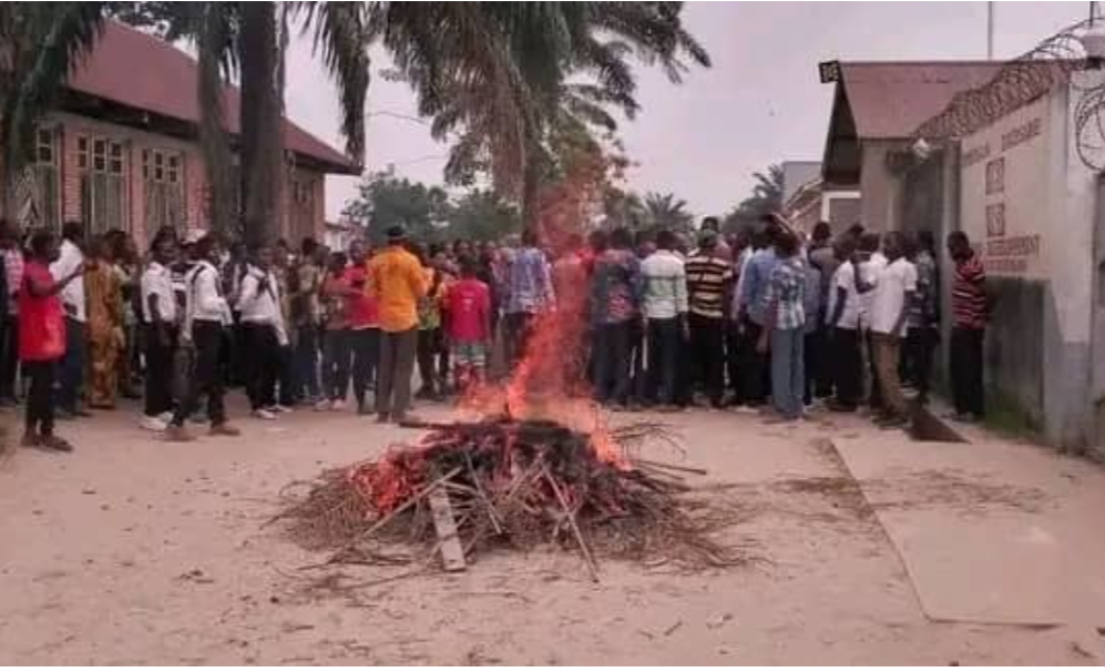 En colère, les enseignants du secteur public se sont rassemblés devant le bureau diocésain de la Caritas Isangi, où ils ont exprimé leur ras-le-bol à travers des chants revendicatifs et l’allumage d’un feu symbolique devant la structure.