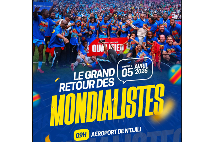La délégation de l’équipe nationale de la République démocratique du Congo est attendue à Kinshasa ce dimanche 5 Avril 2026, selon les dernières informations, pour célébrer avec le public la qualification historique des Léopards à la Coupe du Monde.